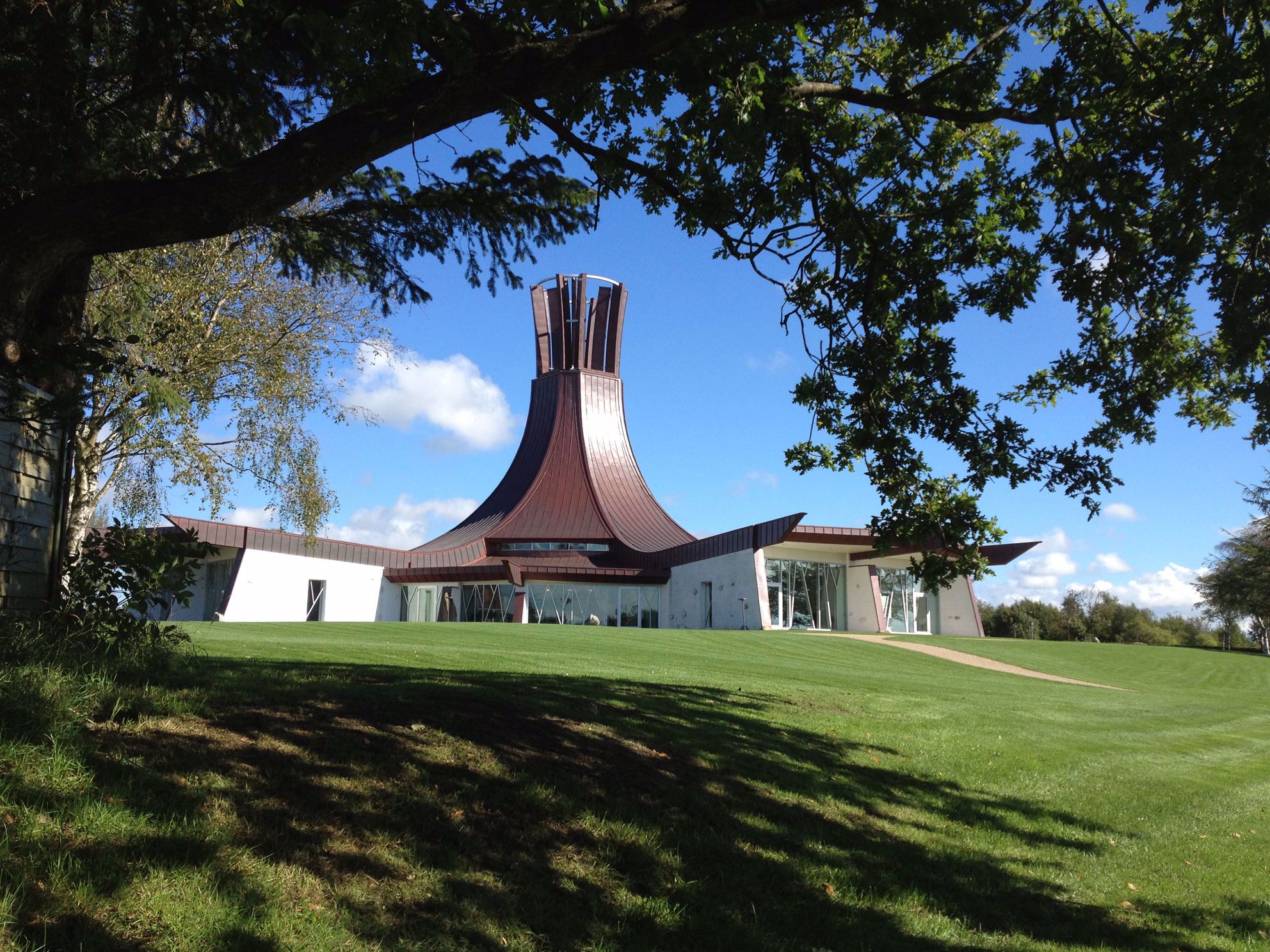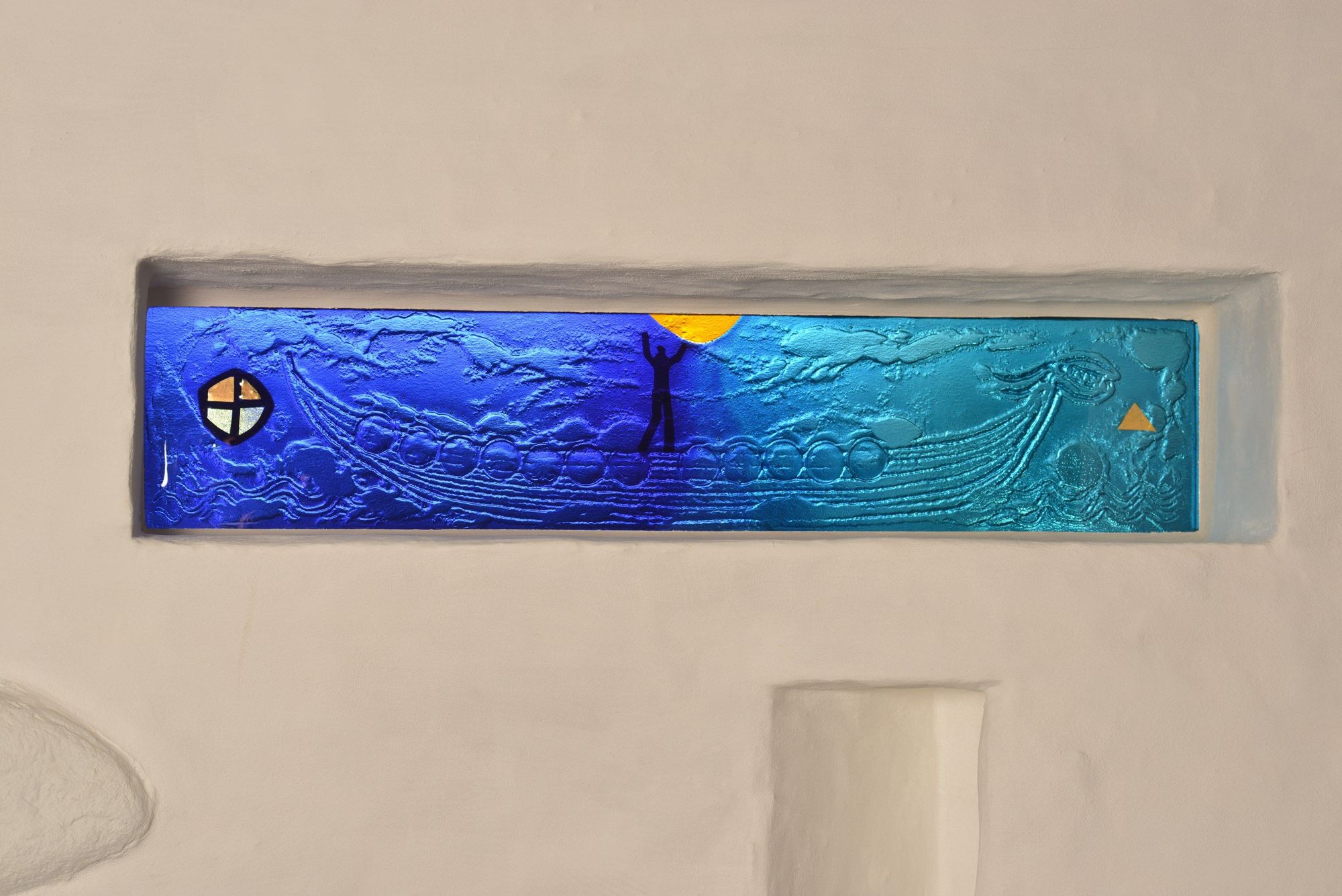 Baunekirken is a round church, built in 1977. The church was renovated in 2011 and has a modern and minimalist look. In Baunekirken you'll find glass art by the artist Adi Holzer.